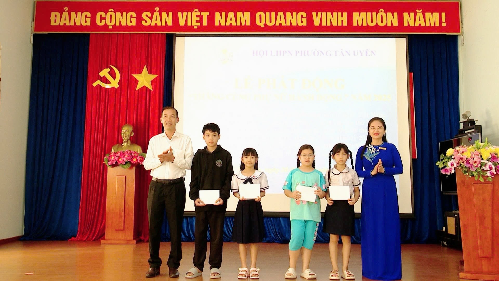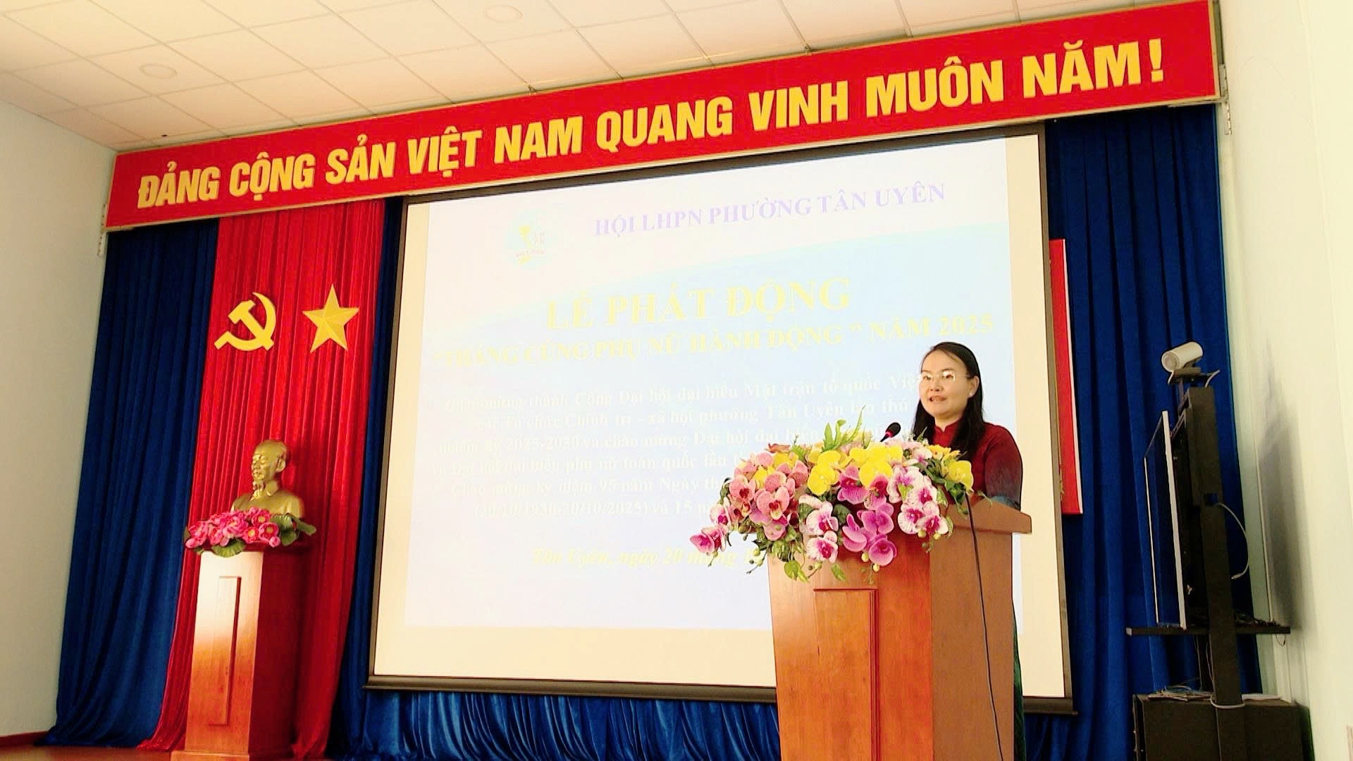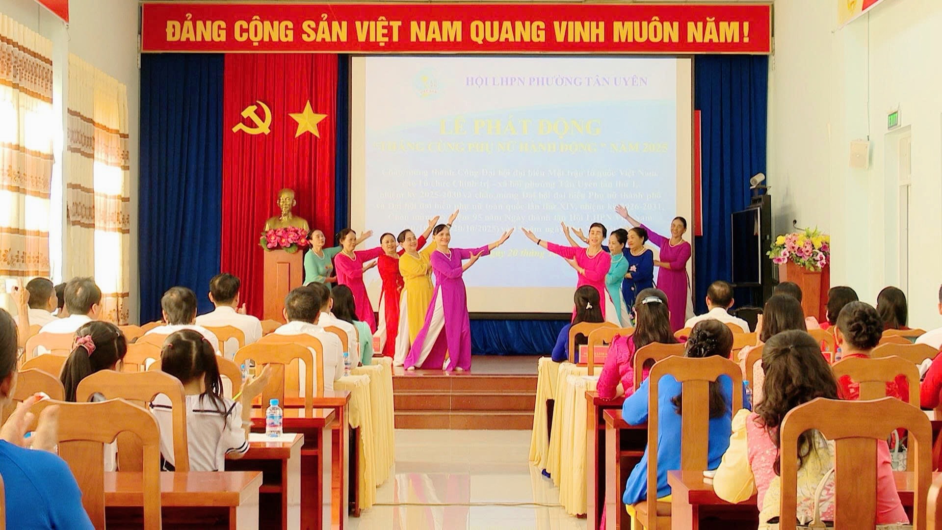 Sáng ngày 20/10, Hội Liên hiệp Phụ nữ phường Tân Uyên tổ chức Lễ phát động “Tháng cùng phụ nữ hành động” năm 2025. Đây là hoạt động ý nghĩa chào mừng thành công Đại hội đại biểu Uỷ ban Mặt trận Tổ quốc Việt Nam, các tổ chức chính trị - xã hội phường Tân Uyên lần thứ I, nhiệm kỳ 2025 - 2030; chào mừng Đại hội đại biểu Phụ nữ thành phố và Đại hội đại biểu Phụ nữ toàn quốc lần thứ XIV, nhiệm kỳ 2026 - 2031; chào mừng kỷ niệm 95 năm Ngày thành lập Hội Liên hiệp Phụ nữ Việt Nam (20/10/1930 - 20/10/2025) và 15 năm ngày Phụ nữ Việt Nam.