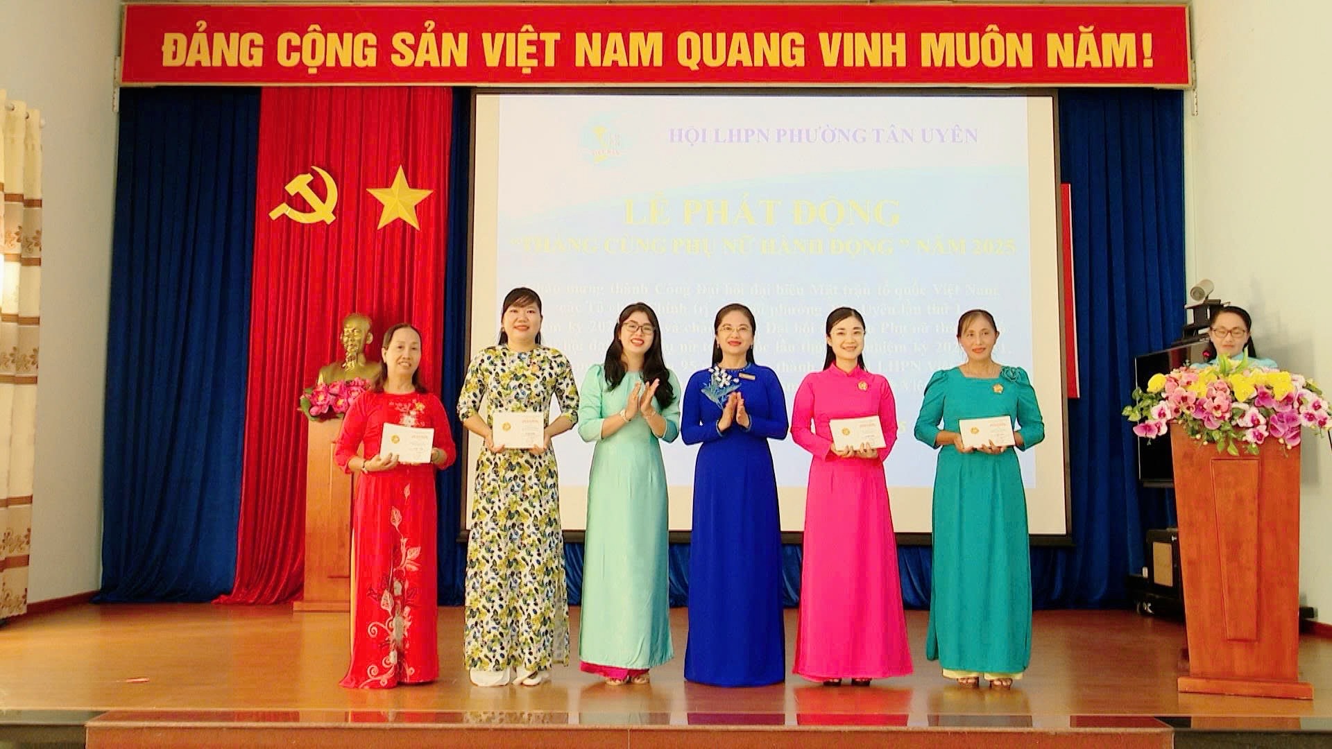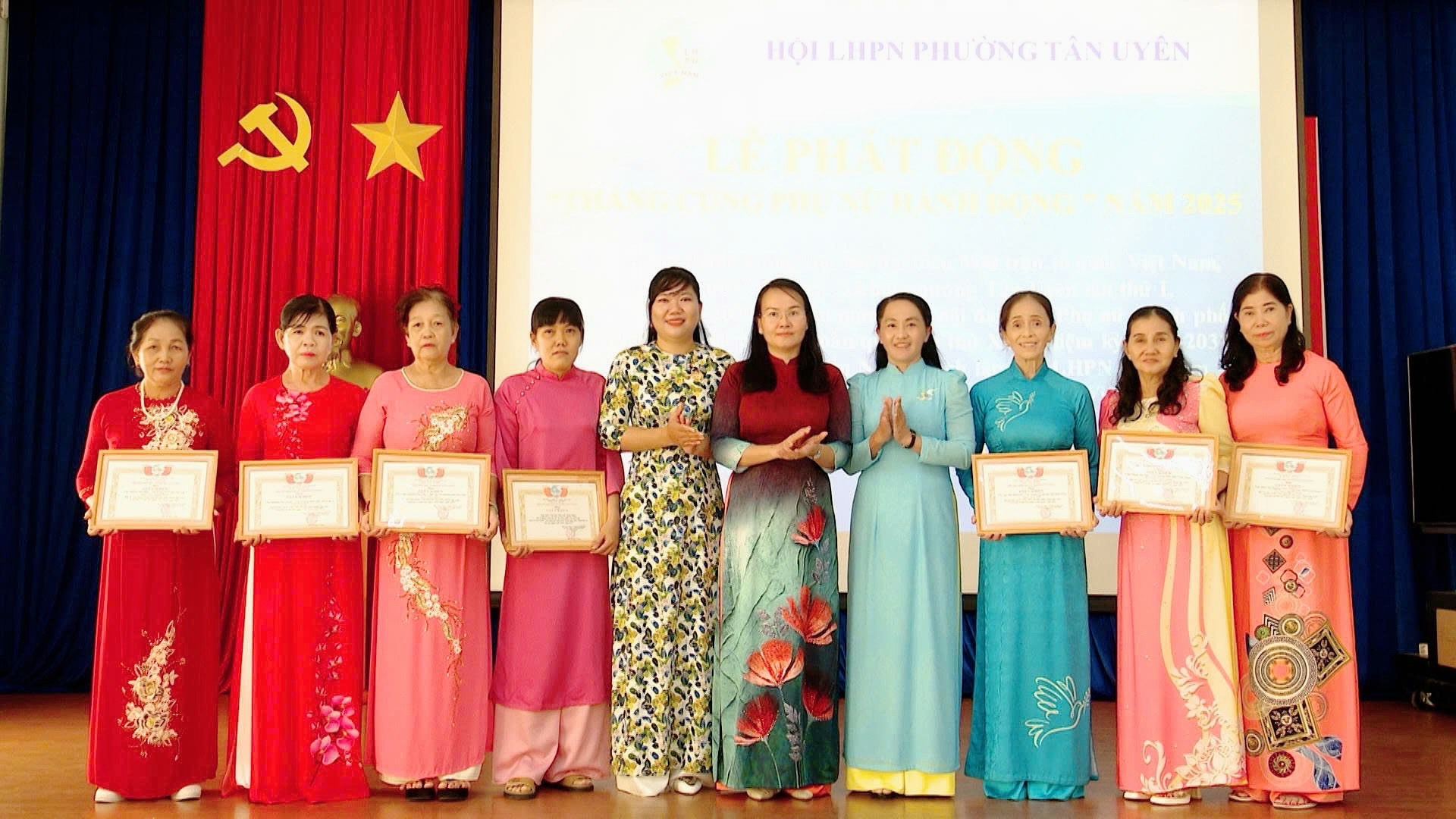 Hội Liên hiệp Phụ nữ phường Tân Uyên đã thông qua Quyết định của Đoàn chủ tịch Trung ương Hội Liên hiệp Phụ nữ Việt Nam tặng kỷ niệm chương “Vì sự phát triển của Phụ nữ Việt Nam” cho 4 chị.