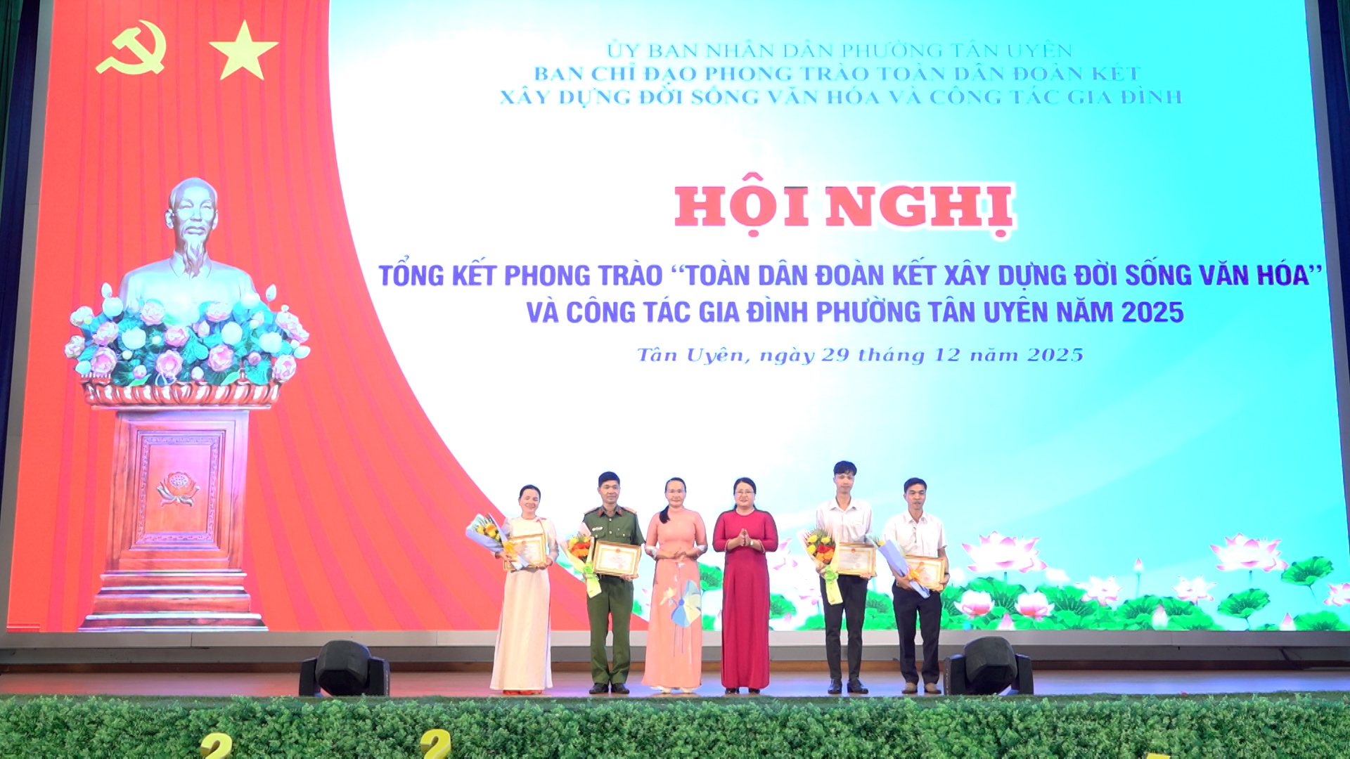 Dịp này, UBND phường Tân Uyên khen thưởng 3 tập thể, 10 cá nhân đã có thành tích xuất sắc trong thực hiện Phong trào “TDĐKXDĐSVH” và Công tác gia đình năm 2025; đồng thời trao Quyết định công nhận 23 khu phố đạt danh hiệu “Khu phố văn hóa” năm 2025.