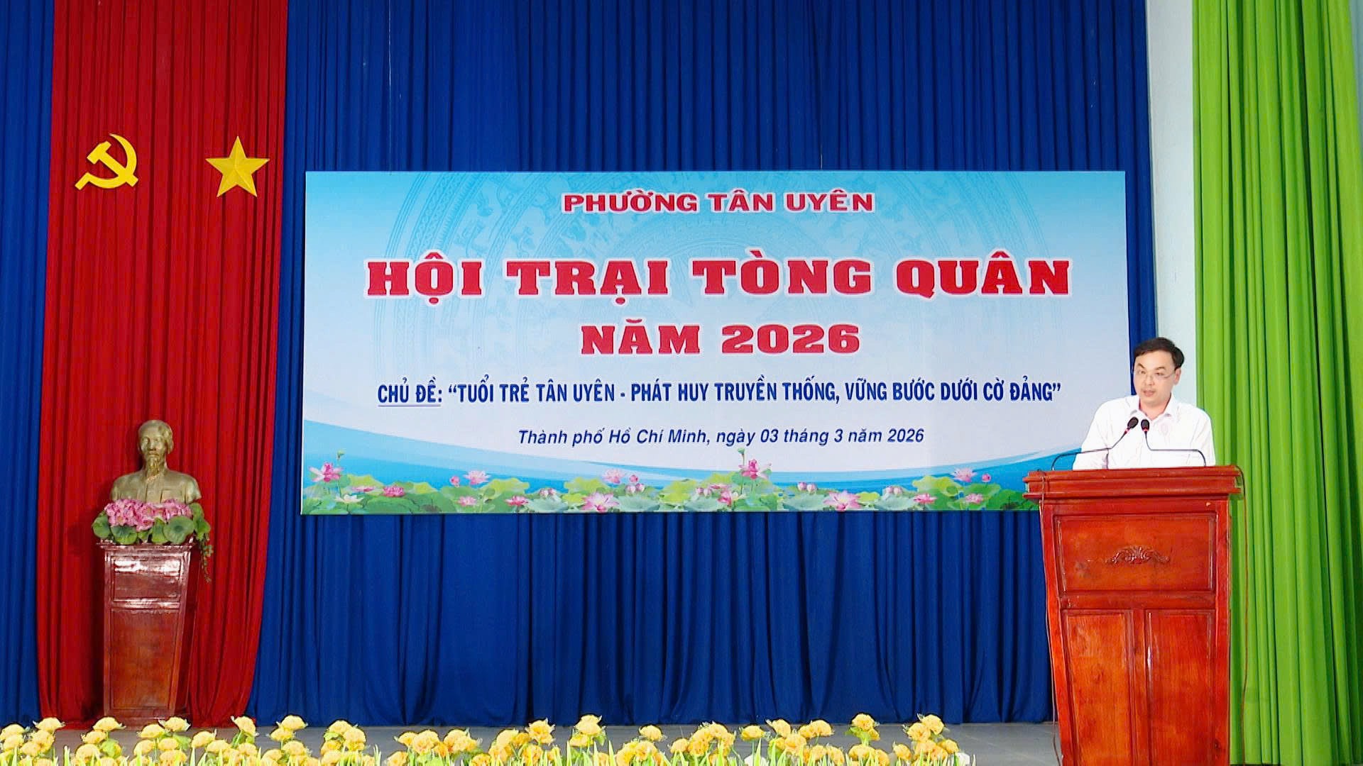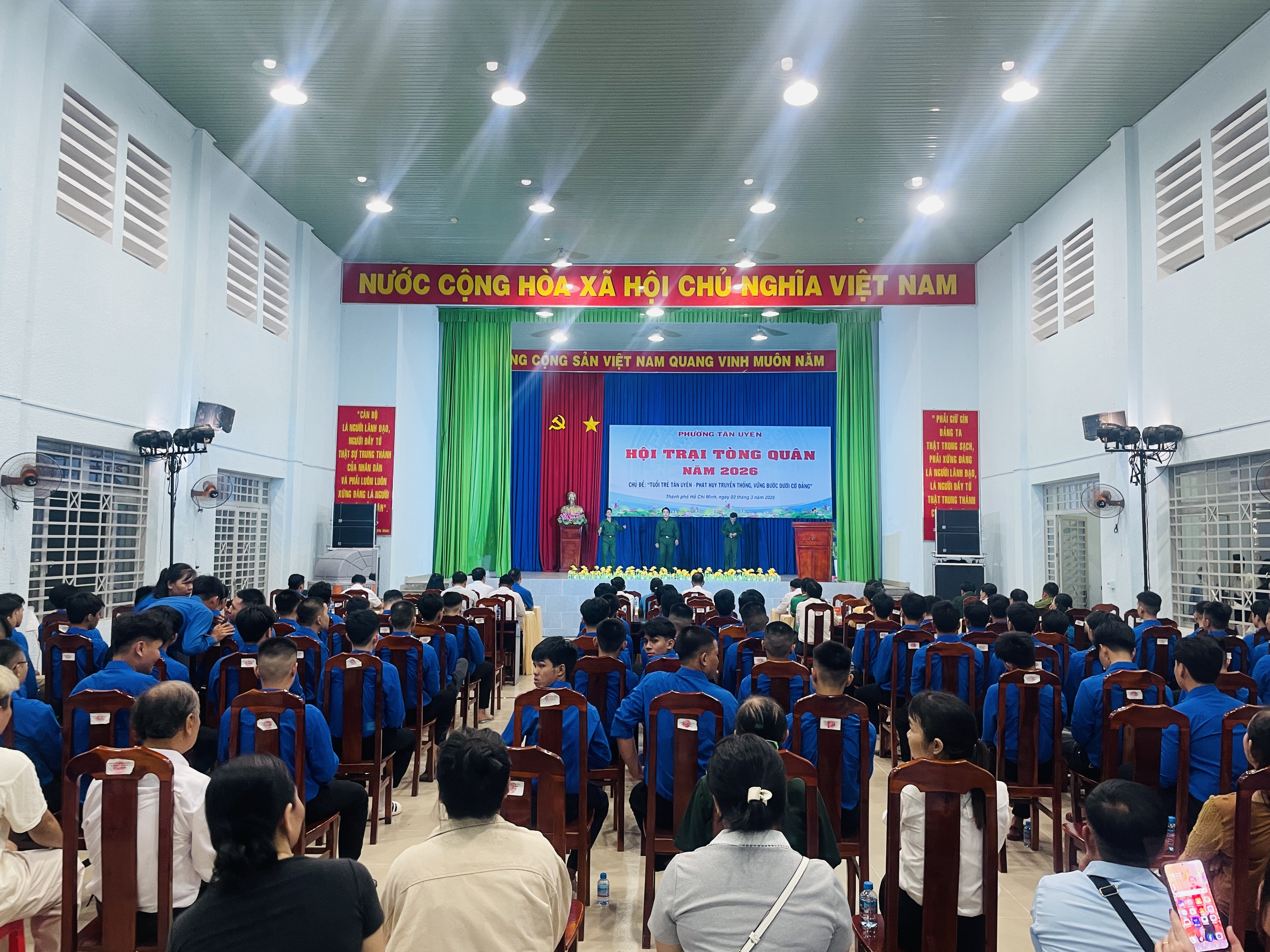 Chiều 3/3, tại hội trường Trung tâm Cung ứng dịch vụ công phường Tân Uyên (Cơ sở 2) - Khu phố Điều Hòa, phường Tân Uyên, Đảng uỷ - HĐND - UBND - Ủy ban MTTQ Việt Nam phường Tân Uyên tổ chức Lễ khai mạc Hội trại Tòng quân năm 2026 với chủ đề “Tuổi trẻ Tân Uyên - Phát huy truyền thống vững bước dưới cờ Đảng”.