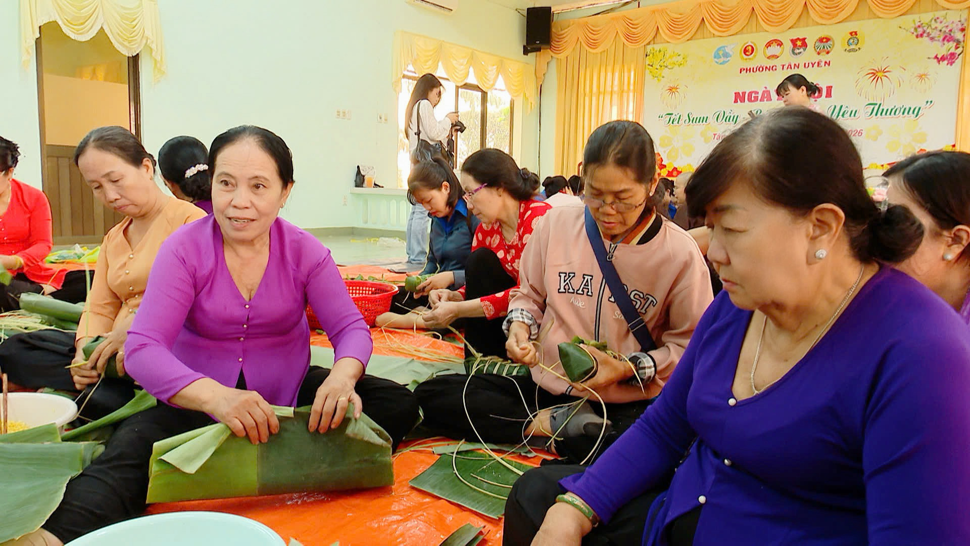 Ngay từ sớm, tại khu nhà ăn Đảng ủy phường đã rộn ràng tiếng cười nói và thơm nồng mùi lá chuối, nếp mới. Điểm nhấn của ngày hội là hoạt động gói và nấu 600 đòn bánh tét truyền thống và một số bánh dân gian với sự tham gia của cán bộ, đoàn viên, hội viên của Ủy ban MTTQ Việt Nam, Hội LHPN, đoàn thanh niên trên địa bàn phường.