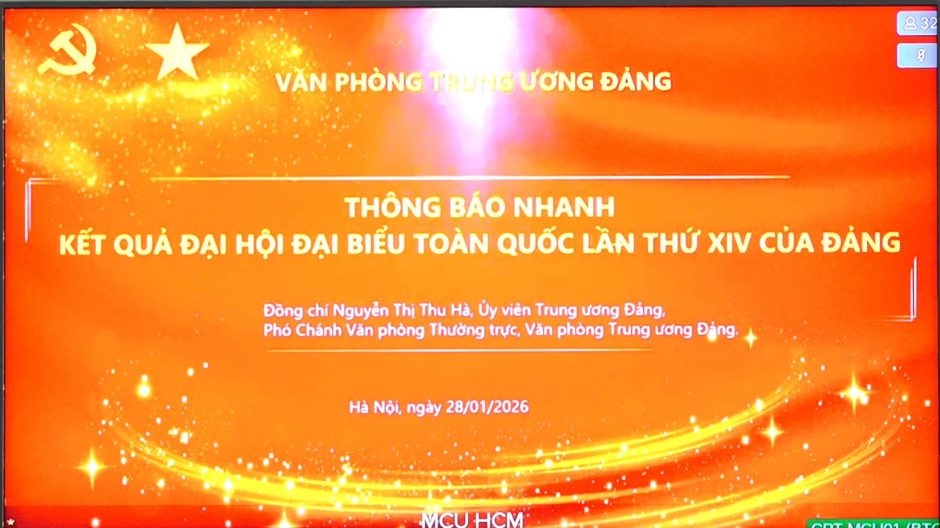 Với phương châm: “Đoàn kết - Dân chủ - Kỷ cương - Đột phá - Phát triển", Đại hội XIV của Đảng diễn ra từ ngày 19/1 - 23/1/2026 tại Thủ đô Hà Nội với sự tham dự của 1.586 đại biểu, đại diện cho hơn 5,6 triệu đảng viên trong toàn Đảng. Chủ đề của Đại hội là: “Dưới lá cờ vẻ vang của Đảng, chung sức, đồng lòng quyết tâm thực hiện thắng lợi các mục tiêu phát triển đất nước đến năm 2030; tự cường, tự tin, tiến mạnh trong kỷ nguyên vươn mình của dân tộc, vì hoà bình, độc lập, dân chủ, giàu mạnh, phồn vinh, văn minh, hạnh phúc, vững bước đi lên chủ nghĩa xã hội”. Sau 5 ngày làm việc, với tinh thần làm việc nghiêm túc, trách nhiệm, khoa học, phát huy cao độ trí tuệ tập thể, dân chủ, đổi mới, Đại hội XIV của Đảng đã thành công tốt đẹp.