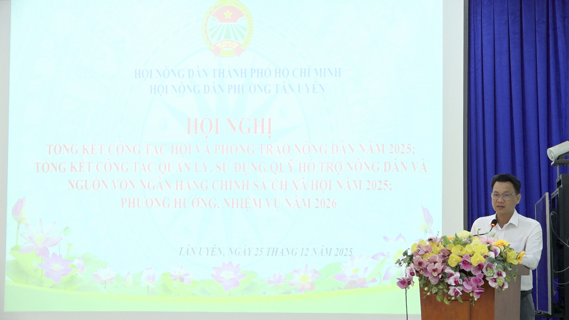 Sáng ngày 25/12, Hội Nông dân (ND) phường Tân Uyên tổ chức Hội nghị tổng kết công tác Hội và phong trào Nông dân năm 2025, triển khai phương hướng, nhiệm vụ năm 2026.