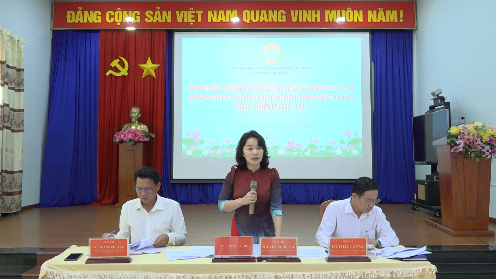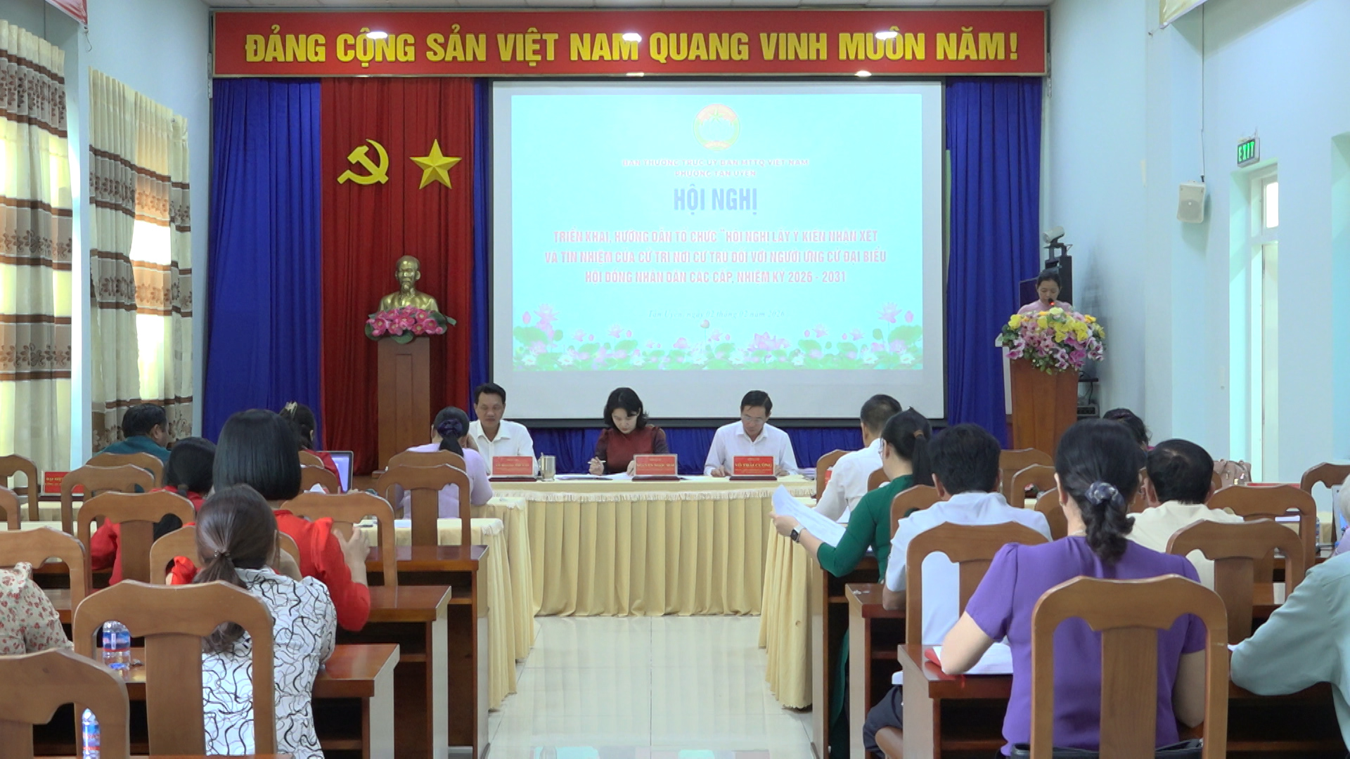 Chiều ngày 02/02, Ban Thường trực Ủy ban MTTQ Việt Nam phường Tân Uyên phối hợp với UBND phường tổ chức Hội nghị triển khai, hướng dẫn quy trình tổ chức lấy ý kiến nhận xét và tín nhiệm của cử tri nơi cư trú đối với người ứng cử đại biểu HĐND các cấp, nhiệm kỳ 2026 - 2031.