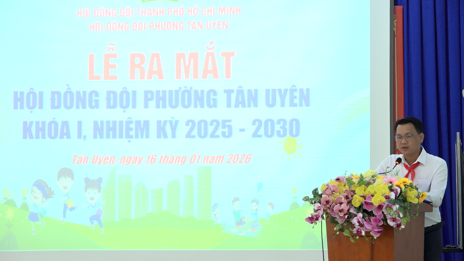 Đại diện Hội đồng Đội phường phát biểu nhận nhiệm vụ, đồng chí Đỗ Thị Thanh Quyên - Bí thư Đoàn Thanh niên phường cho biết, Lễ ra mắt Hội đồng Đội phường Tân Uyên diễn ra trong bối cảnh địa phương chính thức triển khai mô hình chính quyền địa phương hai cấp theo chủ trương của Đảng và Nhà nước, đặt ra yêu cầu mới đối với công tác chăm lo, giáo dục thiếu nhi trên địa bàn. Trong thời gian tới, Hội đồng Đội phường sẽ tập trung xây dựng tập thể đoàn kết, thống nhất, chủ động tổ chức các hoạt động thiết thực, tạo môi trường lành mạnh để đội viên, thiếu nhi học tập và rèn luyện, đồng thời chăm lo tốt hơn cho thiếu nhi, góp phần xây dựng tổ chức Đội ngày càng vững mạnh. Đồng chí mong muốn mỗi em đội viên, thiếu nhi luôn nỗ lực học tập, rèn luyện, phấn đấu trở thành con ngoan, trò giỏi, cháu ngoan Bác Hồ, xứng đáng là lực lượng kế thừa của Đội Thiếu niên Tiền phong Hồ Chí Minh trong tương lai.