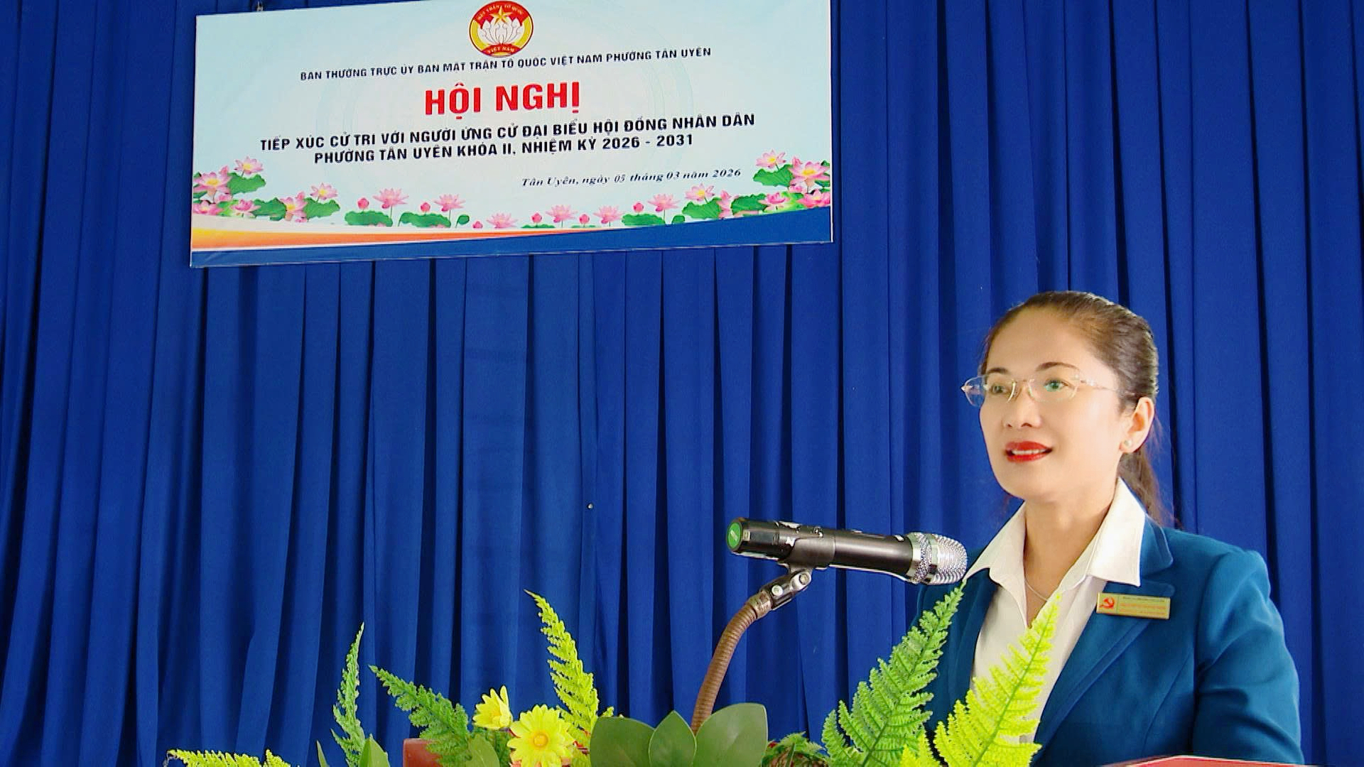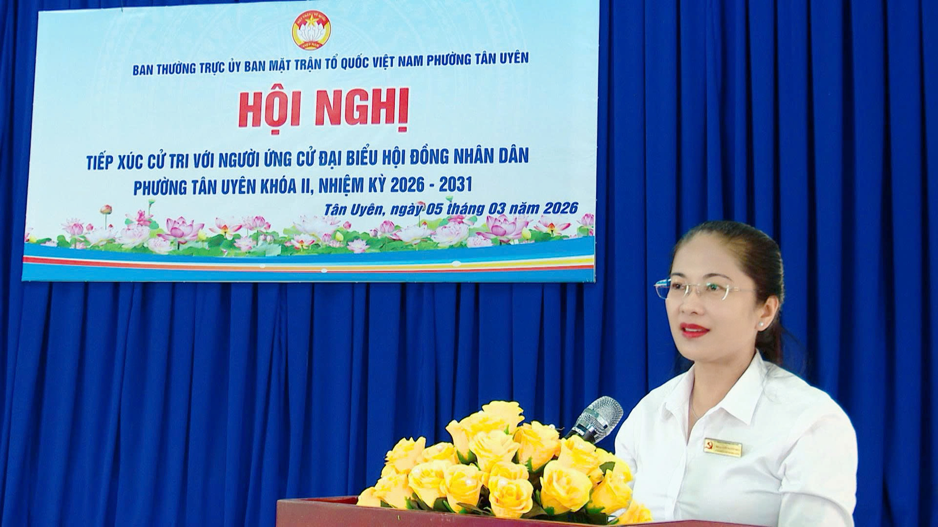 Chiều ngày 05/03/2026, tại Văn phòng Khu phố Tân Trạch, Ủy ban Mặt trận Tổ quốc Việt Nam phường Tân Uyên tổ chức Hội nghị tiếp xúc cử tri với người ứng cử đại biểu Hội đồng nhân dân phường Tân Uyên khóa II, nhiệm kỳ 2026 - 2031.