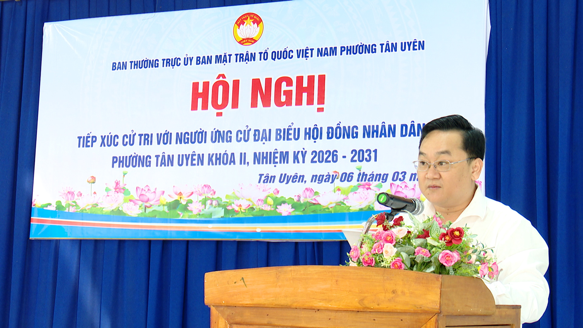 Sáng ngày 6/03/2026, tại Văn phòng Khu phố Uyên Hưng 6, Ủy ban Mặt trận Tổ quốc Việt Nam phường Tân Uyên, tổ chức Hội nghị tiếp xúc cử tri với người ứng cử đại biểu Hội đồng nhân dân phường Tân Uyên khóa II, nhiệm kỳ 2026 - 2021.