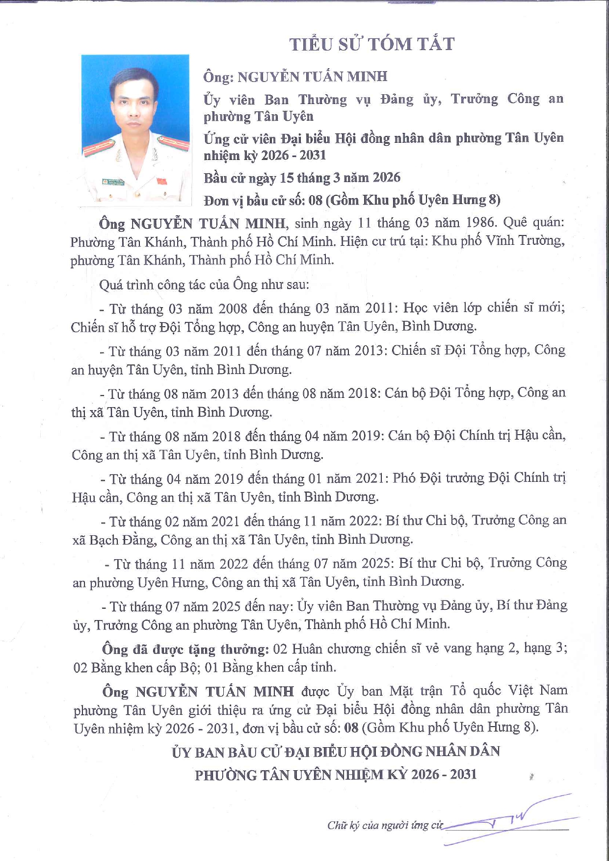 Tiểu sử tóm tắt và Chương trình hành động của ông Nguyễn Thanh Thoại ứng cử viên Đại biểu hội đồng nhân dân phường Tân Uyên khóa II, nhiệm kỳ 2026 – 2031. Đơn vị bầu cử số 08 gồm khu phố Uyên Hưng 8