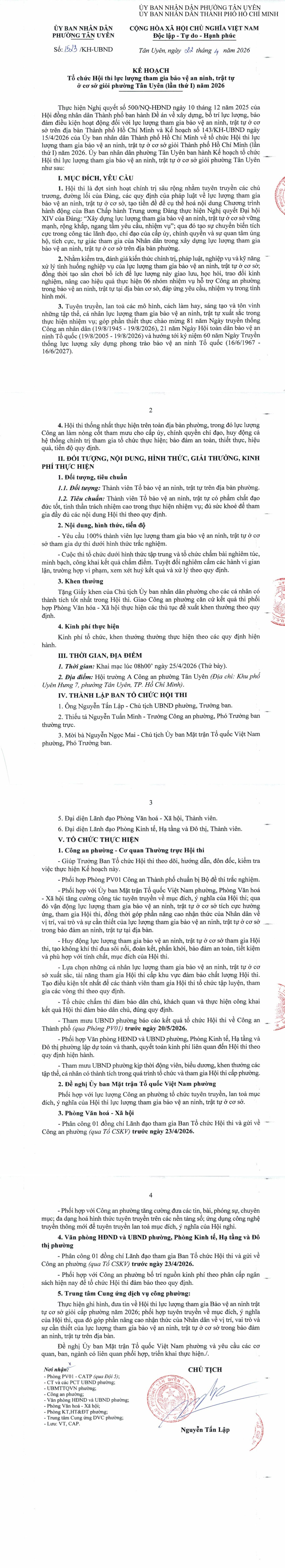Tổ chức hội thi lực lượng tham gia bảo vệ an ninh, trật tự ở cơ sở giỏi phường Tân Uyên (lần thứ I) năm 2026