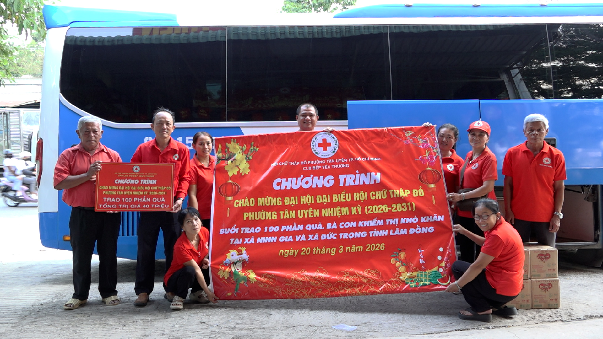 Chương trình trao quà được tổ chức trong ngày 20/03/2026 tại xã Ninh Gia và xã Đức Trọng, tỉnh Lâm Đồng. Đây là hoạt động thiết thực chào mừng Đại hội đại biểu Hội Chữ thập đỏ phường Tân Uyên nhiệm kỳ 2026 – 2031. Tại chương trình, Hội Chữ thập đỏ phường Tân Uyên dự kiến trao tặng 100 phần quà cho bà con khiếm thị có hoàn cảnh khó khăn. Mỗi phần quà gồm: 10kg gạo, dầu ăn, bột ngọt, đường, 01 thùng mì và nước tương, với trị giá 400.000 đồng/phần. Tổng giá trị chương trình là 40.000.000 đồng.