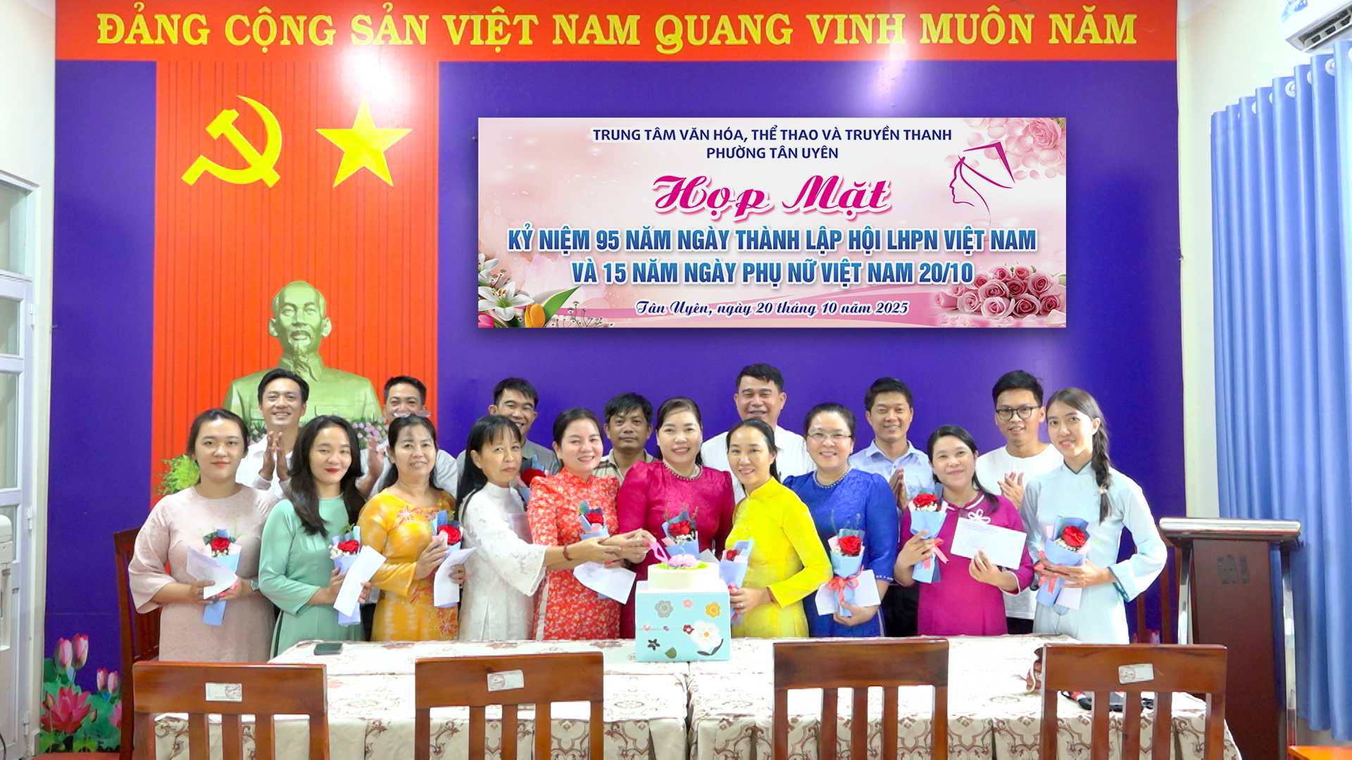 Sáng ngày 20/10, Trung tâm Văn hóa, Thể thao và Truyền thanh phường Tân Uyên tổ chức buổi họp mặt kỷ niệm 95 năm Ngày thành lập Hội Liên hiệp Phụ nữ Việt Nam (20/10/1930-20/10/2025) và 15 năm Ngày Phụ nữ Việt Nam (20/10/2010-20/10/2025).