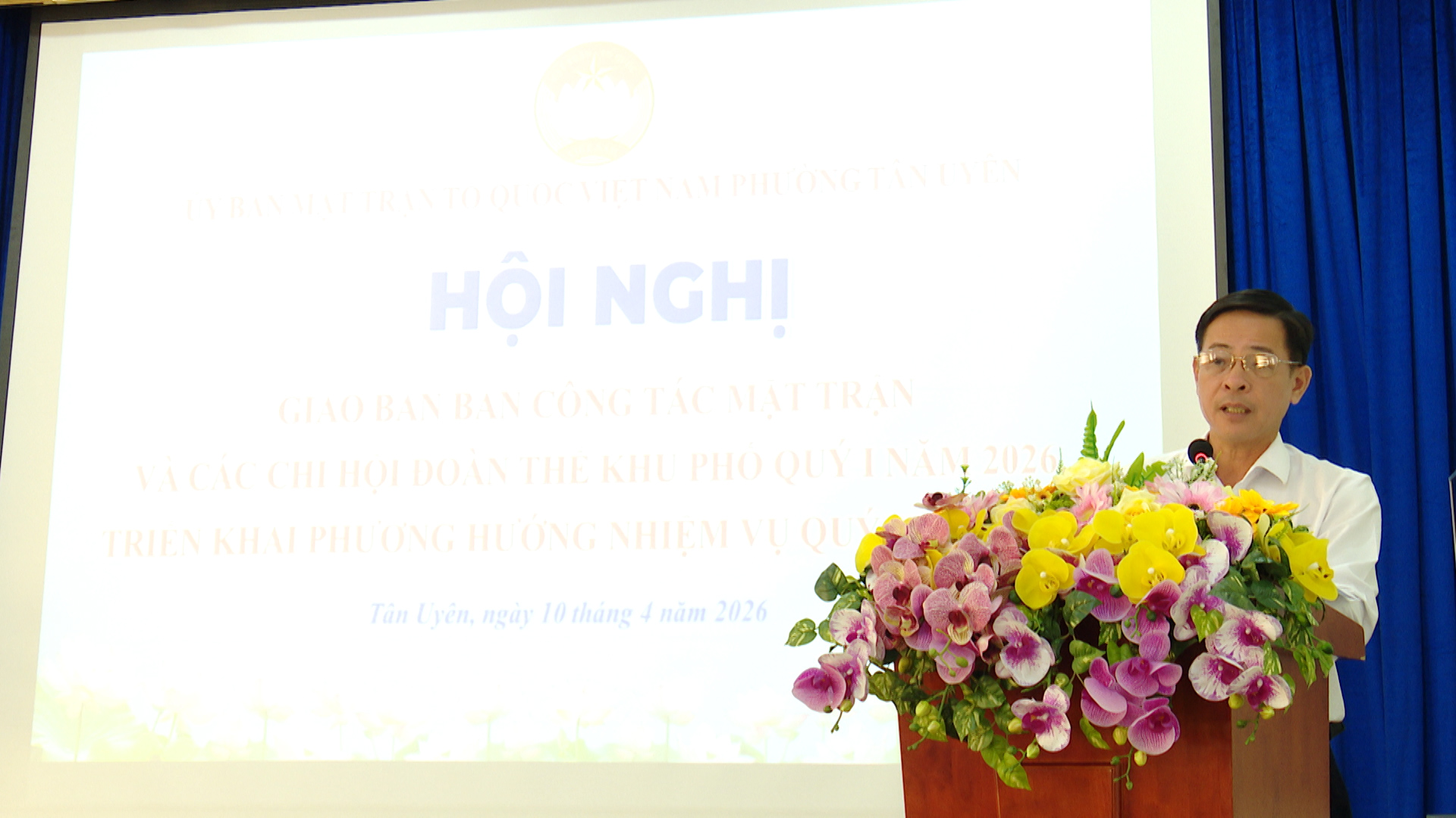 Sáng ngày 10/4, đồng chí Nguyễn Ngọc Mai – Ủy viên thường vụ Đảng ủy, Chủ tịch Ủy ban Mặt trận Tổ quốc Việt Nam phường Tân Uyên chủ trì Hội nghị giao ban Ban Công tác Mặt trận và các chi hội đoàn thể khu phố quý 1 năm 2026. Cùng dự có các đồng chí Phó chủ tịch Ủy ban Mặt trận Tổ quốc Việt Nam phường, các đồng chí Trưởng, Phó ban Ban Công tác Mặt trận và các chi hội đoàn thể 23 khu phố.