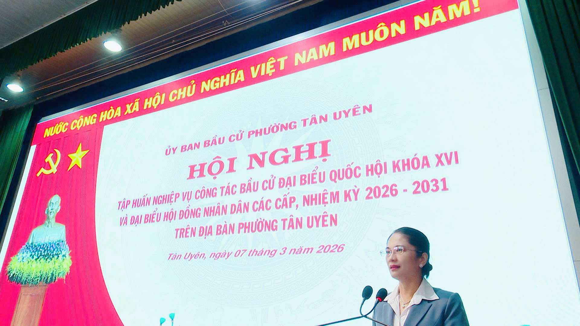 Sáng ngày 7/3, Ủy ban bầu cử phường Tân Uyên tổ chức hội nghị tập huấn nghiệp vụ công tác bầu cử đại biểu Quốc hội khóa XVI và đại biểu Hội đồng nhân dân các cấp, nhiệm kỳ 2026 - 2031.